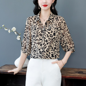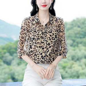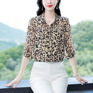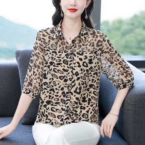 在庫あり 2025 夏の新スタイルプリントシャツ気質中年母親の衣装模擬シルクルーズお腹カバーシャツトップ