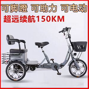 ダブル高齢者ペダルアシスト自転車電動三輪車レジャーモビリティ自転車大人家庭用小型軽量