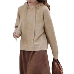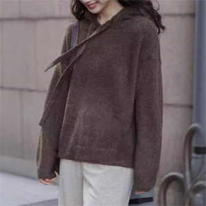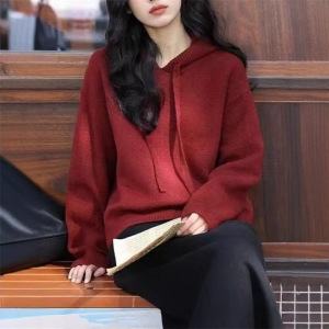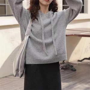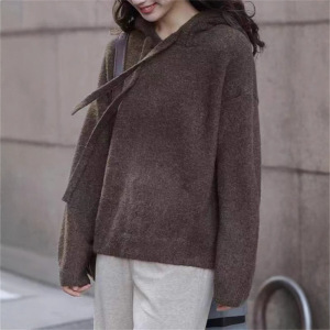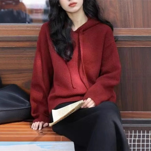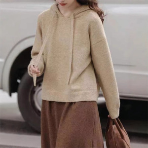 跨境连帽套头毛衣女2025春秋新款韩版宽松慵懒风针织衫长袖女上衣
