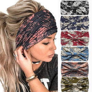 欧美热销波西米亚风腰果花弹力运动发带女士宽边头带头巾头饰批发