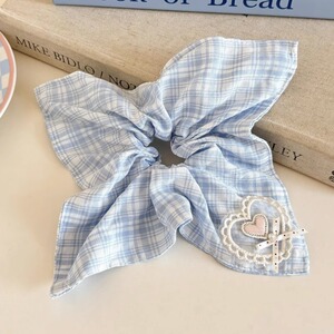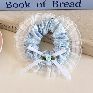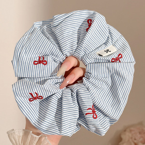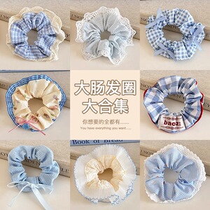 温柔蓝色清新大肠发圈超大号头绳女生高级感头花头饰皮筋发绳发饰
