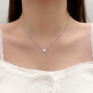 S925 スターリングシルバーリボンウォータードロップジルコンネックレス女性のニッチデザインハイエンド韓国インライト高級鎖骨チェーン
