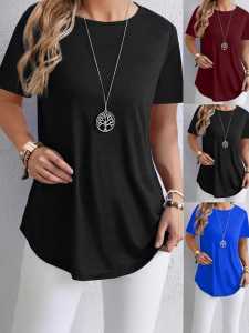 2025 春夏クロスボーダーヨーロッパとアメリカの Amazon TEMU 売れ筋の新しい女性の多用途なカーブした裾ボタン半袖女性