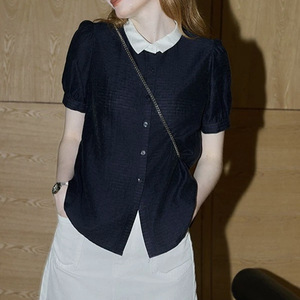 都会的なモダンな女性用半袖シャツ 2025 夏の新しいカラーマッチングエレガントなラペルファッション文学シャツ