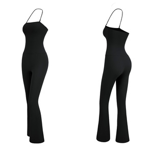 NULS抗菌裸感挂脖瑜伽连体衣紧身吊带瑜伽服女喇叭运动健身服