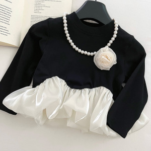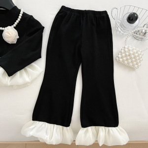 女童韩版套装秋季2025新款儿童长袖荷叶边上衣弹力微喇裤两件套潮