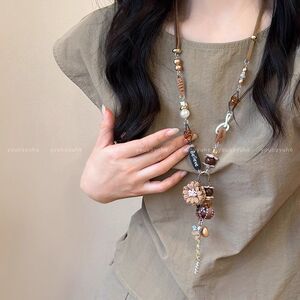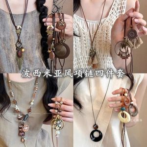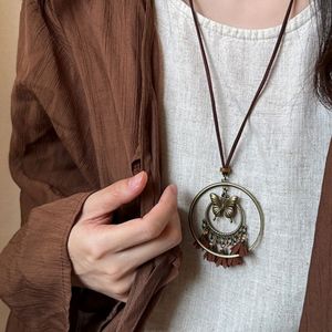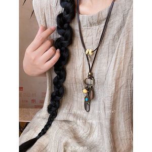 新中式禅意古铜羽毛项链女波西米亚民族风双层叠戴长款毛衣链配饰