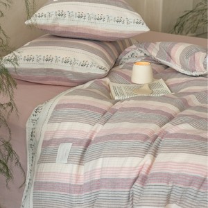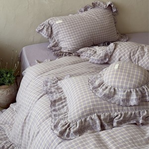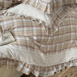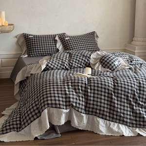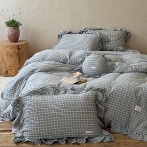 复古小清新A类色织婴儿级全棉皱皱纱ins清爽格子被套双人床四件套