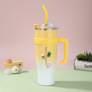 40 オンスの大容量アイスカップ 304 ステンレス鋼断熱カップポータブルハンドルグラデーションストローカップ車のカップ