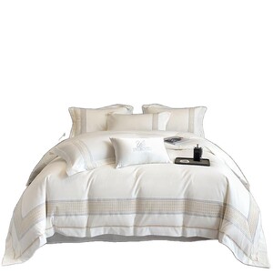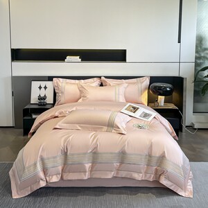 七星级酒店风刺绣长绒棉四件套高级感全棉床单纯色被套床上用品