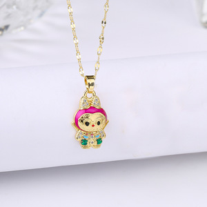 跨境爆款可爱卡通锆石拉布布吊坠项链女气质高级感锁骨链饰品礼物