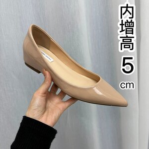法式裸色内增高尖头平底鞋女2025年夏季新款浅口鞋子百搭通勤单鞋