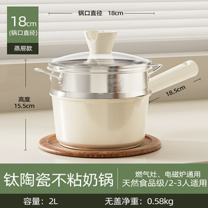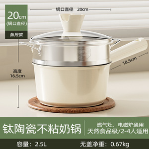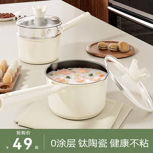 钛陶瓷奶锅宝宝辅食锅婴儿热牛奶煎煮一体小奶锅家用泡面不粘汤锅