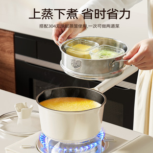 16cm法式钛瓷奶锅+304蒸笼