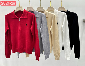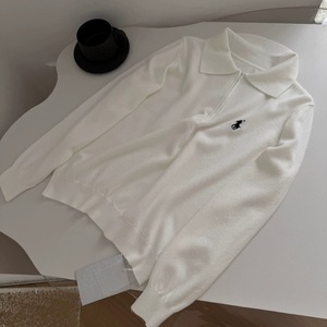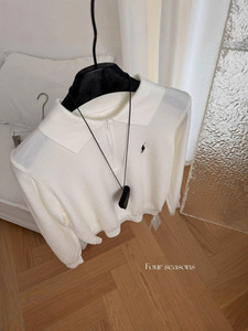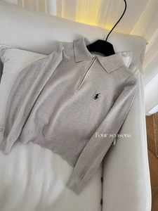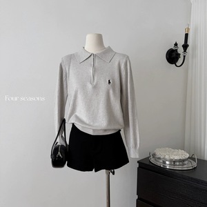 包芯纱慵懒风马标刺绣半拉链Polo针织毛衣女秋冬百搭打底长袖上衣