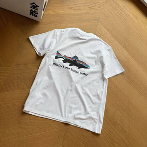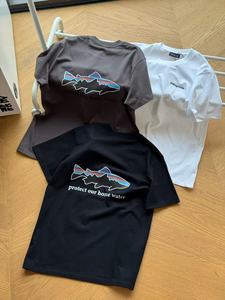 高品质新款夏季潮牌巴塔飞鱼字母T恤复古运动圆领时尚情侣短袖