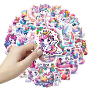 50枚の漫画風動物ユニコーンステッカー 防水PVC製 携帯電話 ノートパソコン用 越境で人気の装飾ステッカー 卸売