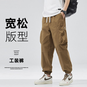 美式多口袋工装裤男春秋宽松束脚裤子设计感男士纯棉休闲长裤潮牌