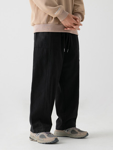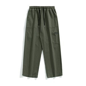 ミッドシームステッチデザインワークカジュアルパンツメンズ春スタイルサイドパッチポケット日本製レトロドレープルーズロングパンツ