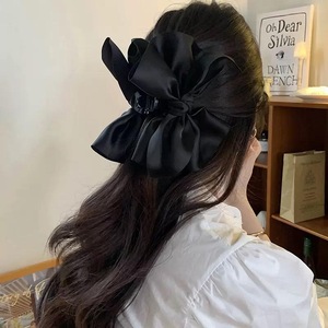 黑色缎面大号蝴蝶结抓夹女新款高级感后脑勺发夹鲨鱼夹子发饰