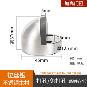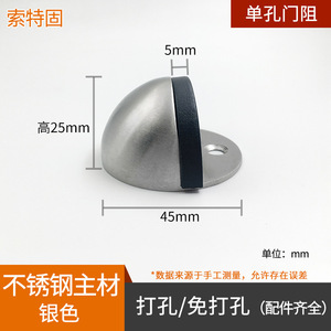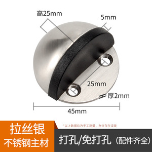 304不锈钢门挡地吸 免打孔半圆形门阻门后防撞橡胶防盗门加高龟顶