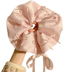 小清新甜美缎面发圈蝴蝶结飘带仿珍珠大肠发圈高级感大号头绳发饰