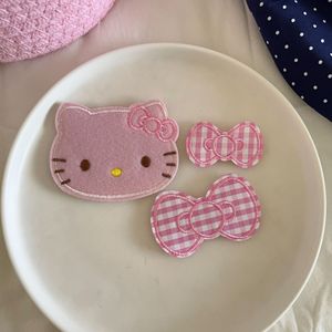 かわいいキティリボン猫の髪整理ステッカー前髪ベルクロガールハート刺繍ステッカーの3点セット