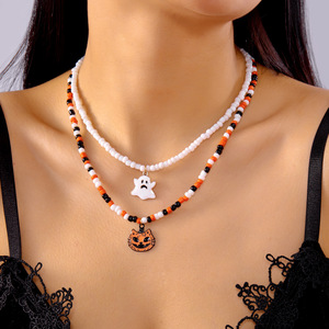 クロスボーダーヨーロッパとアメリカの新しいハロウィーンパーティージュエリー面白いクリエイティブネックレスゴーストキャットセットペンダント鎖骨チェーン