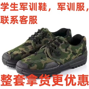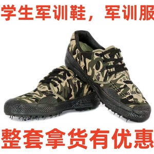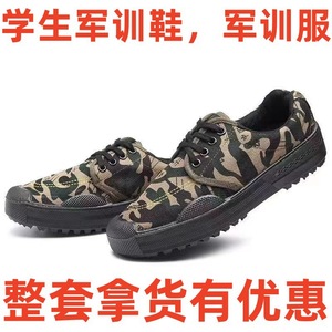 学生军训鞋服作训鞋男女解放迷彩鞋防滑耐磨低帮工地橡胶底黄胶鞋