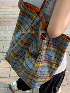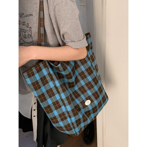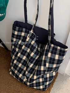 カジュアル両面キャンバスバッグ韓国スタイル怠惰なスタイル脇の下バッグ女性のための 2025 新しい大容量チェック柄トートバッグ