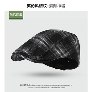 磨毛格子前进帽女生2025新款春秋款格纹鸭嘴报童帽画家鸭舌贝雷帽