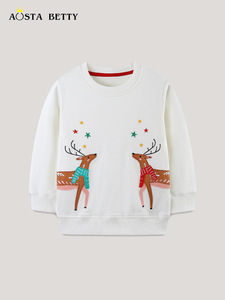 ヨーロッパとアメリカンスタイルの女の子のスウェットシャツクリスマス刺繍子供用スウェットシャツニットコットンプルオーバー子供用ドロップシッピング