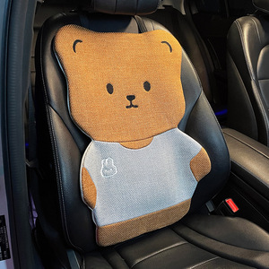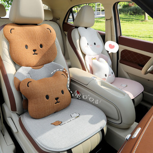 亚麻汽车坐垫夏季透气凉垫女士车内饰单片卡通可爱四季通用座椅套