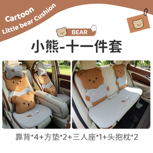 【四季亚麻款】小熊坐垫+头枕腰靠(11件套)