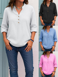 2025 外国貿易クロスボーダー新女性のカジュアル長袖ドアチューブ V ネックレギュラーマルチカラー女性のトップシャツ