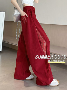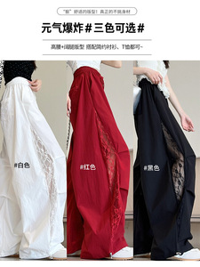 レースステッチ中空ワイドレッグパンツ女性のための夏の 2025 新しいハイウエストスリムドレープストレート山本カジュアルパンツ