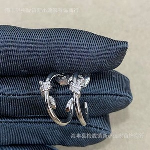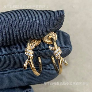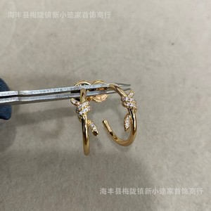 高版本V金T家蝴蝶结耳钉女镀18K金knot绳结带钻交叉耳环耳饰批发