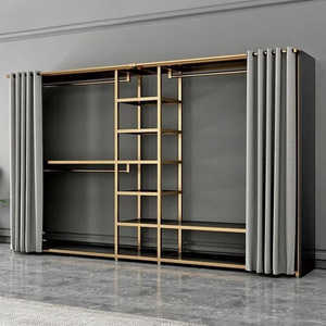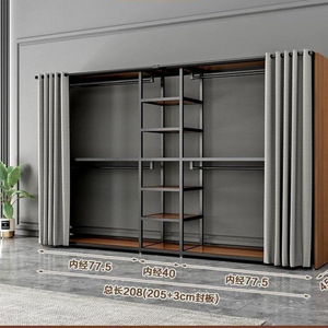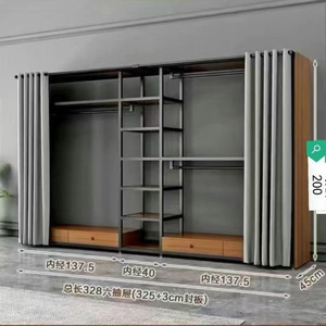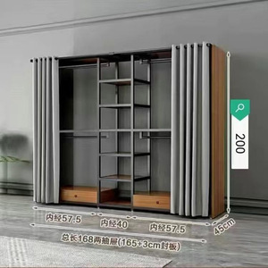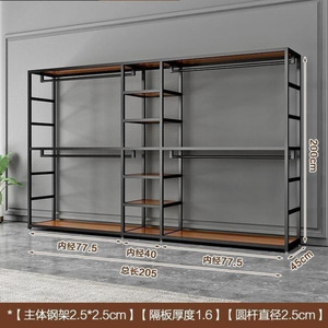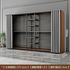 衣帽架钢结构衣柜家用卧室加厚双层加粗衣帽架两层金属简约现代