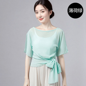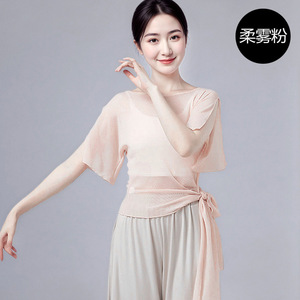 古典舞纱衣女短袖蝴蝶上衣现代舞中国舞蹈练功演出身韵训练服成人