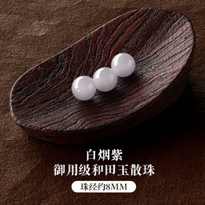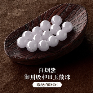 ホワイトスモークパープル - ビーズ直径8mm*3個 [厳選されたロイヤルグレードのスモークパープルジェイド]