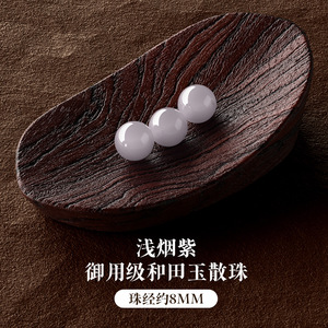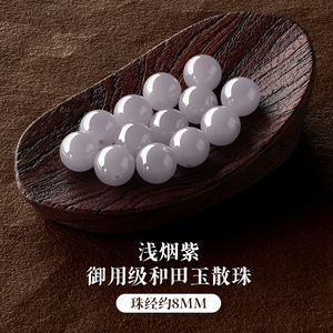 ライトスモークパープル - ビーズ直径8mm*3個 [ロイヤルグレードのスモークパープルジェイドを推奨]