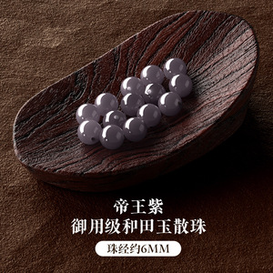 インペリアルパープル - ビーズ直径6mm*30個/紐 【厳選された王室グレードのスモーキーパープル翡翠】 【一丸国家検査証明書付き】