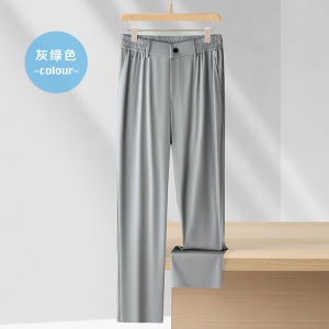 阔腿桑蚕丝夏季薄款男士休闲裤宽松直筒运动裤男中年裤子男
