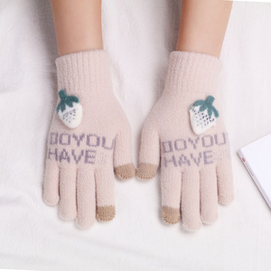 冬季新款毛绒手套提花加绒保暖学生手套男女户外羊绒手套手套五指
