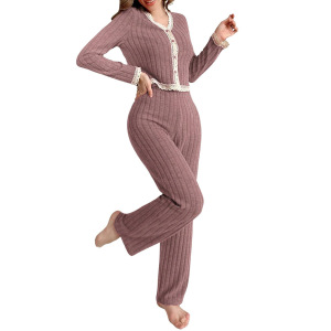 ヨーロッパとアメリカンスタイルのクロスボーダー新しいレースカーディガンショートトップとパンツファッショナブルな気質パジャマツーピースセット女性用