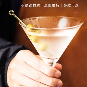 カスタマイズされたクロスボーダーステンレス鋼フルーツピックフルーツニードルバーカクテルデコレーションピックオリーブコンポートメタルワインピック