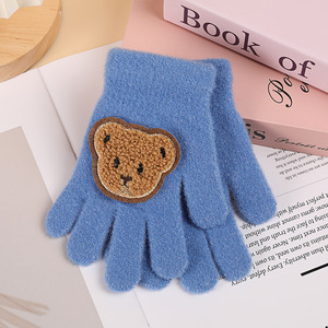 新款儿童保暖手套秋冬季防寒五指时尚卡通可爱小熊学生骑行手套