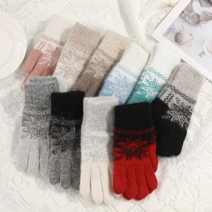 针织提花毛线防寒保暖手套女士加厚户外骑行加绒分指冬季跨境百搭
