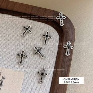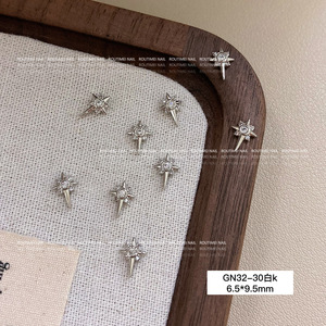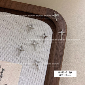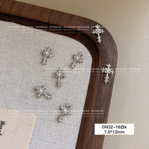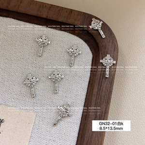 美甲饰品新款星芒锆石十字架系列银色高级爆闪百搭指甲饰品轻奢款