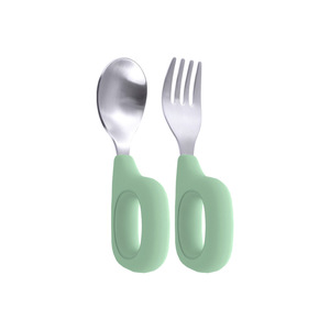 ベージュ - ステンレススチールシリコンフォークとスプーン